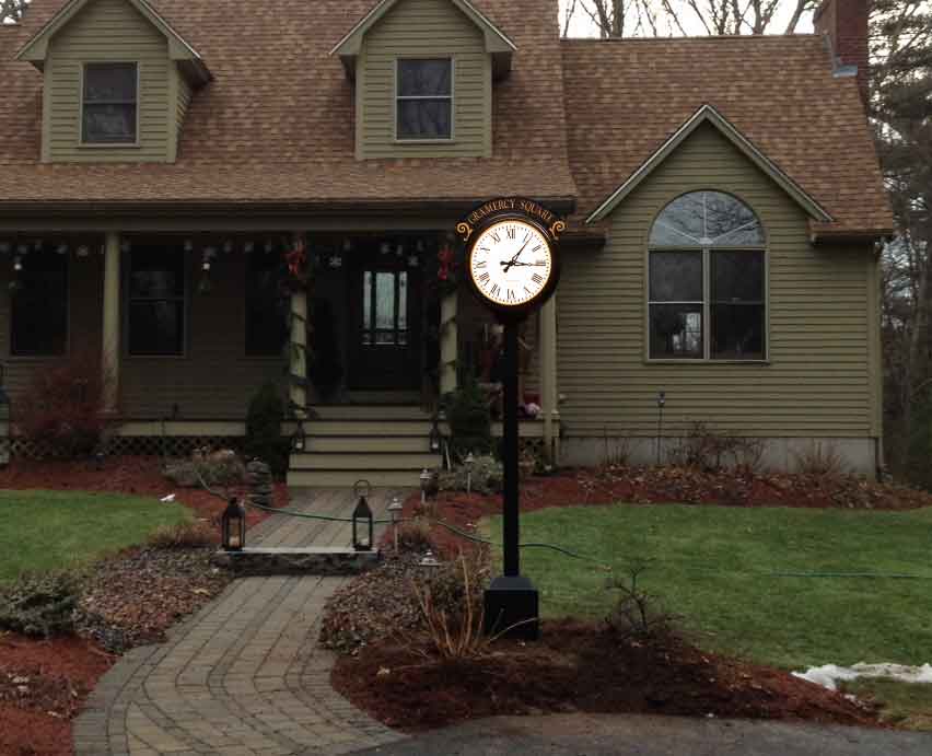 Residential Courtyard Street Clock – Face N, Hands AS, Blue with Satin Aluminum highlights
